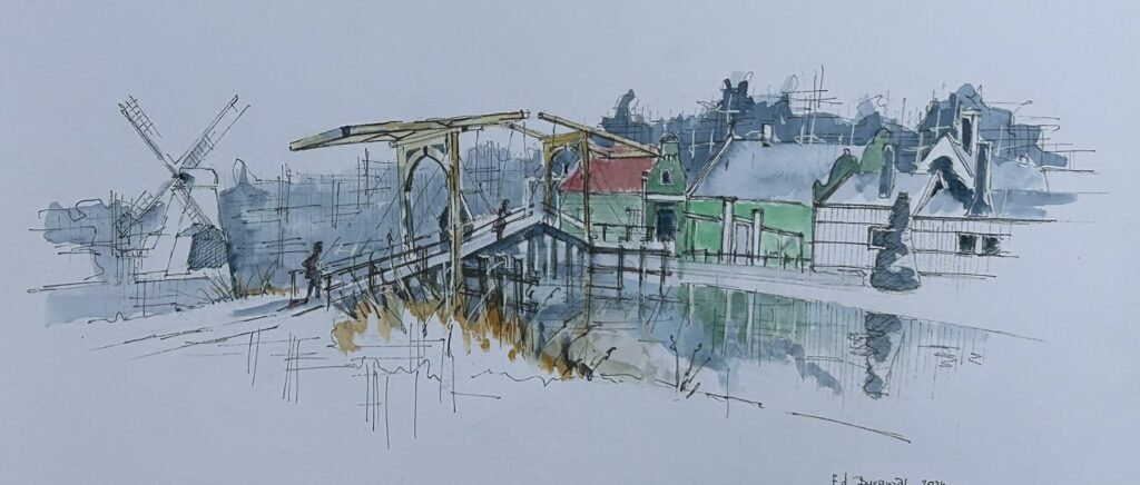 Vandaag neem ik jullie mee op een creatieve reis naar het Nederlands Openluchtmuseum. een plek waar Ed Burgwal Urban Sketcher een impressie van de Zaanse Schans gemaakt heeft. Laten we dieper duiken in de wereld van deze kunstvorm en het betreffende werk verkennen.